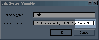 drive. Remember to include the";" semicolon after the c:\mysql\bin,