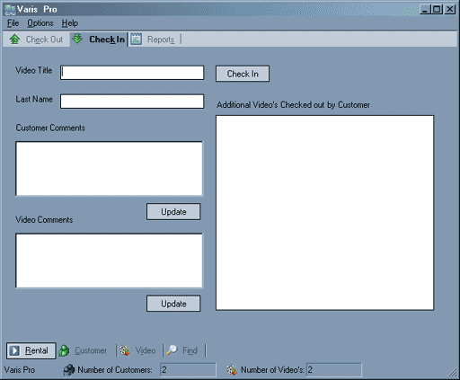 This is a shot of the check in screen. It allows comments to be entered in at check in about the video being checked in as to its condition or any notes you would like to make.
